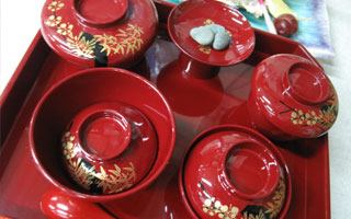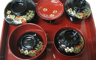子供が一生食べ物に困らない事を祈る儀式です。男の子用は子孫繁栄を祝い朱塗り、女の子用は黒塗りとされています。